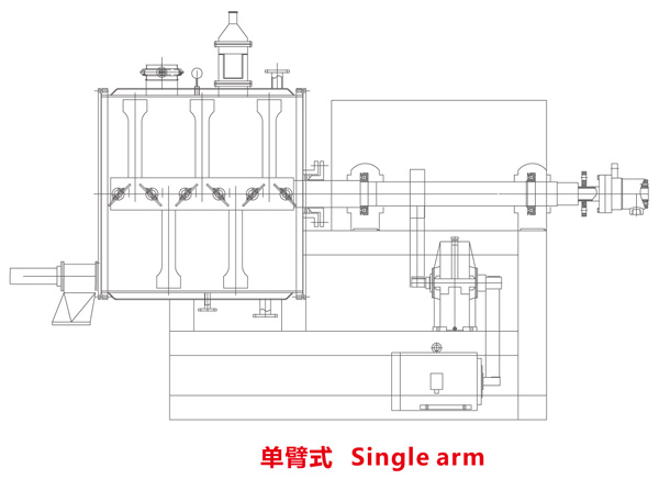 本機(jī)是一種新型臥式間歇式真空干燥設(shè)備,濕物料經(jīng)傳導(dǎo)蒸發(fā),帶有刮板攪拌器不斷清除熱面上的物料,并在容器內(nèi)推移形成循環(huán)流,水份蒸發(fā)后由真空泵抽出。
